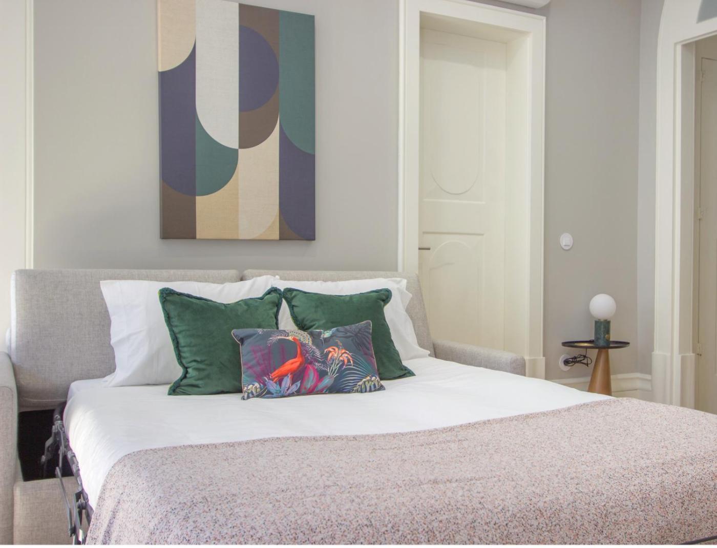 Apartamento (2º Piso). Featuring a private entrance, this air-conditioned apartment comprises 1 living room, 1 separate bedroom and 1 bathroom with a shower and a bidet. The well-fitted kitchen features a stovetop, a refrigerator, a dishwasher and kitchenware. The apartment provides a washing machine, soundproof walls, a tea and coffee maker, a flat-screen TV with cable channels, as well as city views. The unit offers 2 beds. ;