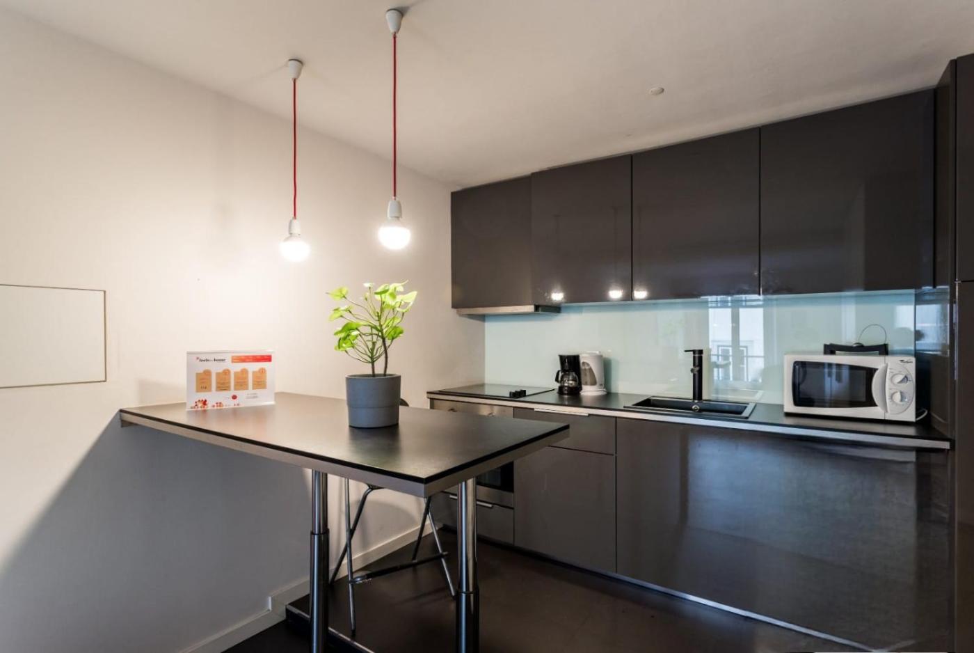 Estúdio. The bright studio has a living area with a double sofa-bed and a TV. The open-plan accommodation includes a fully-equipped kitchenette, which has a dining table. The modern bathroom comes with a shower. Free WiFi access is available.