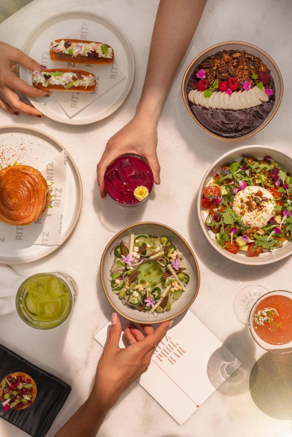 Comece o seu dia com um generoso buffet de pequeno-almoço, servido diariamente no elegante Restaurante Varanda, com vistas inigualáveis ​​sobre o parque. Durante os meses mais quentes, poderá desfrutar de um cocktail no terraço de Verão do Bar Ritz. No quarto, as opções de refeições estão disponÃveis 24 horas, e os hóspedes podem desfrutar de sushi em alguns dias da semana.