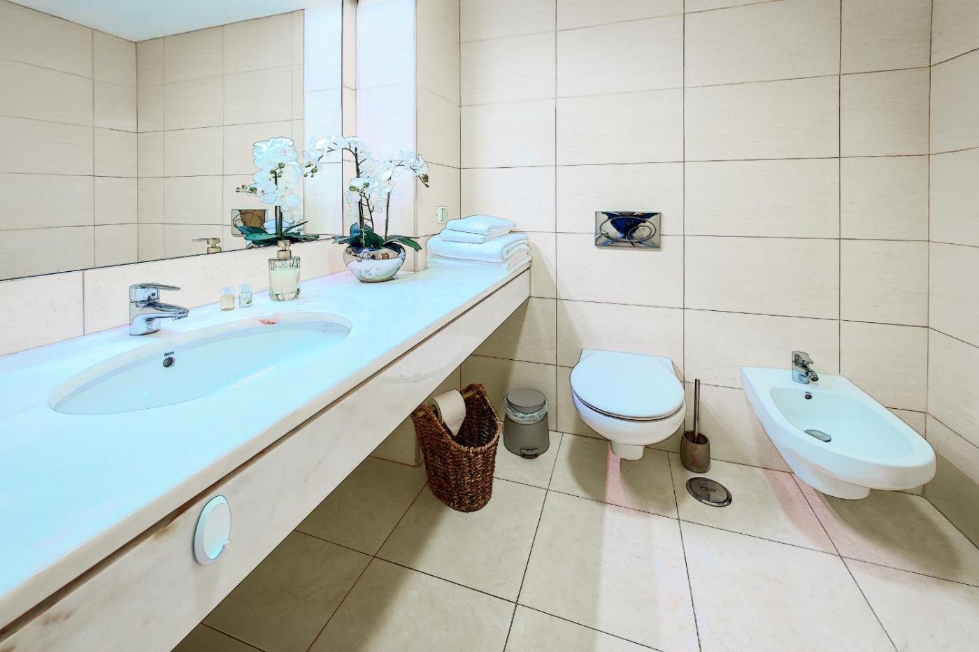 Este apartamento com ar condicionado tem 2 quartos, uma sala de estar, uma cozinha totalmente equipada com frigorífico e máquina de café, e 2 casas de banho com bidé e banheira ou chuveiro. Toalhas e roupa de cama são providenciadas neste apartamento.